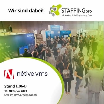Natürlich sind wir dabei, unsere revolutionäre Softwarelösung Nétive VMS Suite den Besuchern vorzustellen. Unsere VMS Suite bietet als zentrale Drehscheibe für die HR-Systeme von Organisationen sowohl eine Lösung für Kostenkontrolle und Risikoreduktion als auch strategische Einblicke für fundierte Entscheidungen. Eine flexible, sichere und zukunftsfähige Lösung. Aber es beginnt damit, die Wünsche und Bedürfnisse der Organisation zu erfassen.